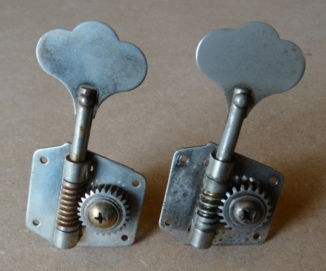 Aged ‘reverse’ bass tuner on the left (Gotoh repro)...and the real thing on the right (1962 Kluson original).